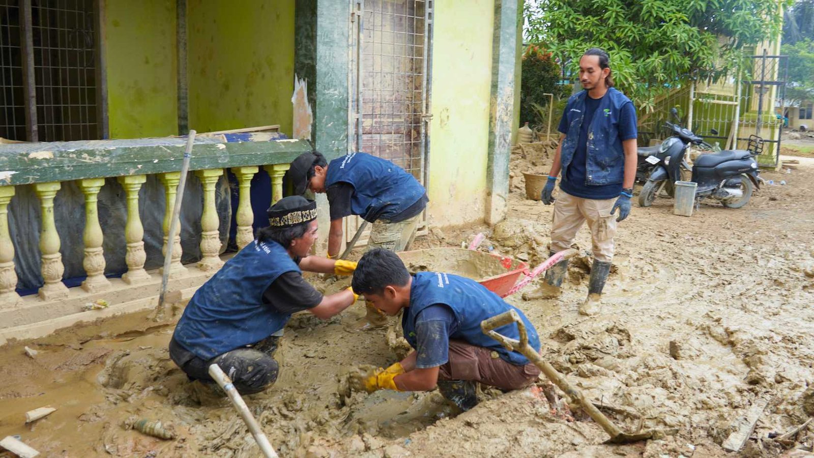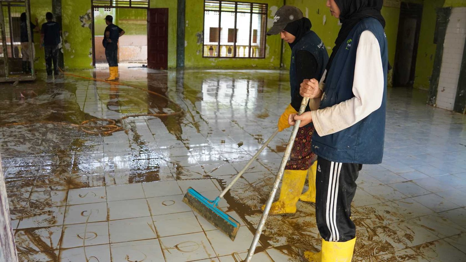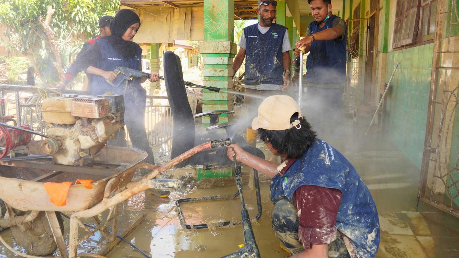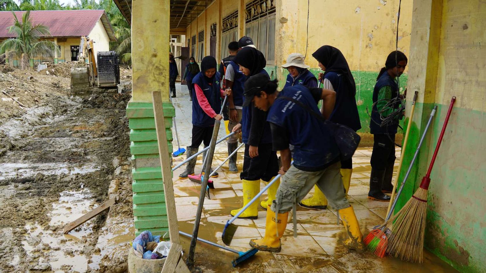 Aksi gotong royong ini melibatkan tim relawan Yayasan HAkA yang bekerja sama dengan guru, wali murid, mahasiswa Kuliah Kerja Nyata (KKN) Universitas Syiah Kuala, serta mahasiswa Universitas Islam Negeri Ar-Raniry. Para relawan membersihkan lumpur tebal dari ruang kelas dan ruang guru, sekaligus membersihkan fasilitas sekolah yang masih layak digunakan agar proses belajar mengajar dapat segera kembali berjalan. Kegiatan di Aceh Tamiang berlangsung dari tanggal 10-15 Januari 2026.