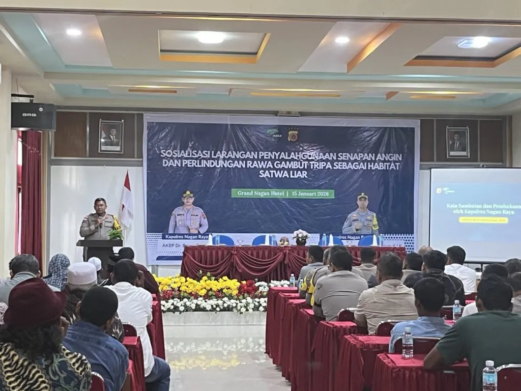 Kapolres Nagan Raya, AKBP Dr. Benny Bathara, S.I.K., M.I.K., dalam sambutannya menegaskan bahwa penyalahgunaan senapan angin tidak hanya melanggar ketentuan hukum, tetapi juga berpotensi menimbulkan korban jiwa dan memperparah ancaman terhadap satwa